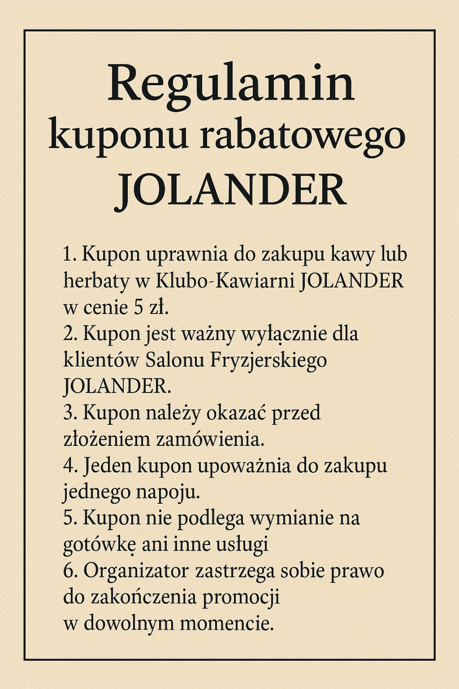 Regulamin promocji - Firma Usługowa JOLANDER Salon fryzjersko kosmetyczny, szkolenia, konferencje, imprezy oklicznościowe